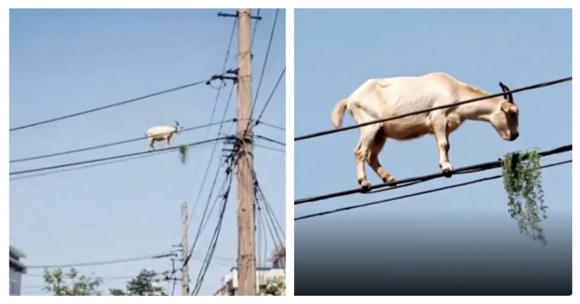 Коза забралась на провода
