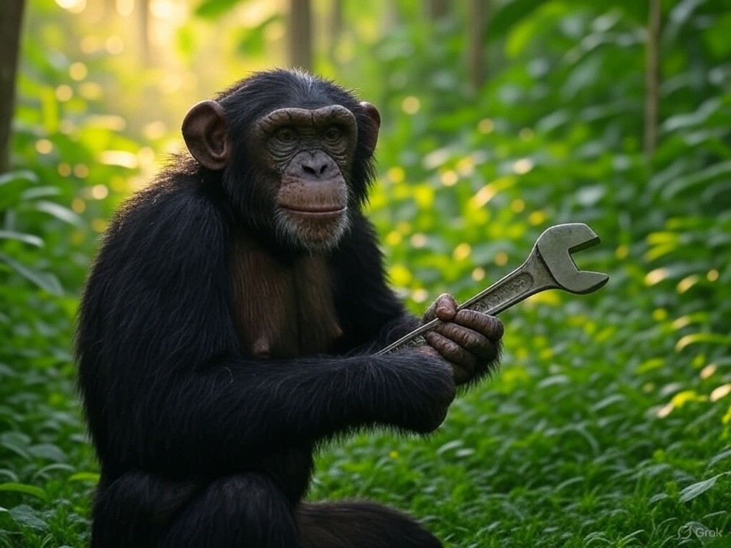 Юмор Обезьяна с отвёрткой 28.09.2025 - от markus Автор: 13 апреля 2025 11:09 Ну или с гаечным ключём. Когда-то обезьяна взяла палку и стала человеком, где-то слышал. А если возьмёт молоток? Ссылки по теме: