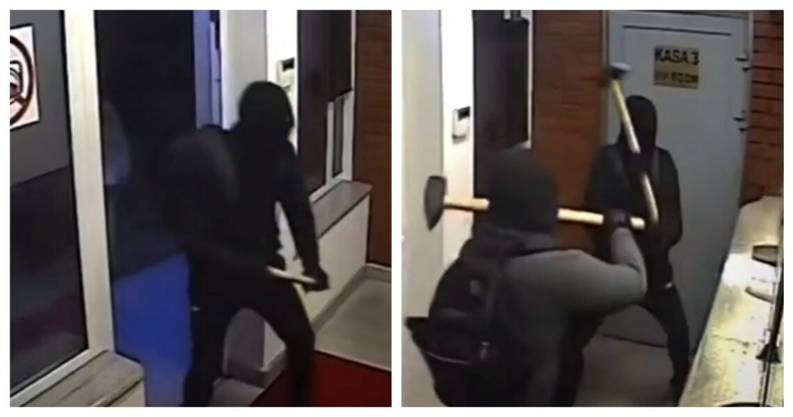 Сцена из «Большого куша» приключилась в польском Щецине. В пункт обмена валют забежали два персонажа в черных масках и попытались разбить ударопрочное стекло. Быстро сообразив, что это плохая идея парочка сбежала, побросав инструмент на месте.