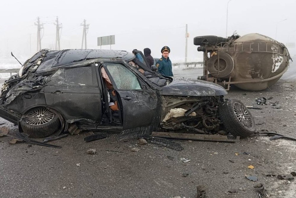 Цементовоз опрокинулся на внедорожник с семьёй