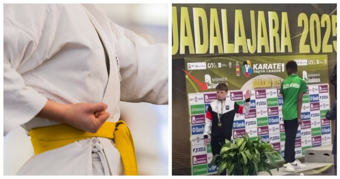 По регламенту далее спортсмены фотографируются, пожимают друг другу руки, но украинец не стал этого делать, демонстративно покинув зал. На пьедестале остались ставший чемпионом (кумите, U14, до 45 кг) россиянин Игорь Григорьев (выступал под нейтральным флагом) и серебряный медалист Абдулла Албиши из Саудовской Аравии.
