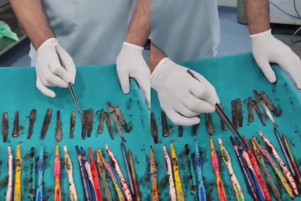 УЗИ показало, что внутри желудка пациента скопились десятки инородных предметов. Мужчина заявил, что в центре лечения с ним плохо обращались, он чувствовал себя беспомощным и злым, и начал глотать попавшиеся под руку вещи из-за сильной тревоги.