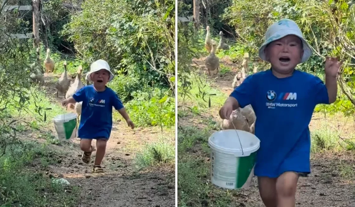 Сцена тронула пользователей сети и напомнила многим детство в деревне, когда они сами убегали от гусей.