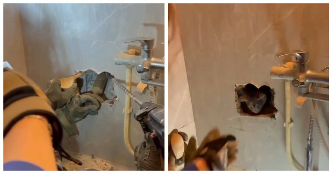 Котенок просидел в вентиляции несколько дней, обессилил и отблагодарил своих спасителей мурчанием и лаской. Малышку уже осмотрел ветеринар.