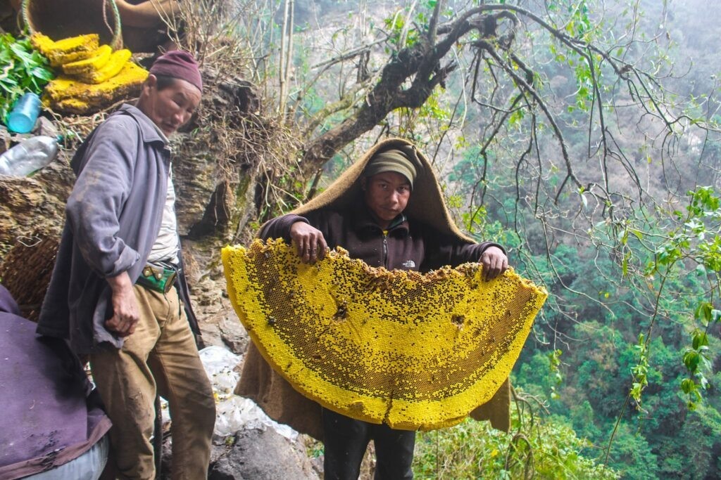 Зимой гималайские пчёлы, в отличии от наших, не ложатся в спячку прямо в гнезде. Они спускаются на высоту в 1000-1500 метров и прячутся под камнями и корнями деревьев. Как только воздух начинает теплеть, они возвращаются обратно.