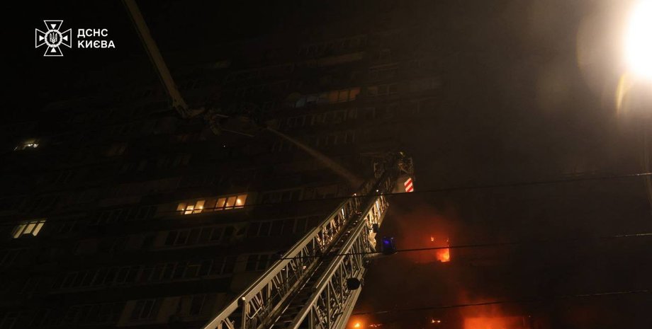 Повреждена многоэтажка в Киеве в результате массированной атаки россиян | ГСЧС