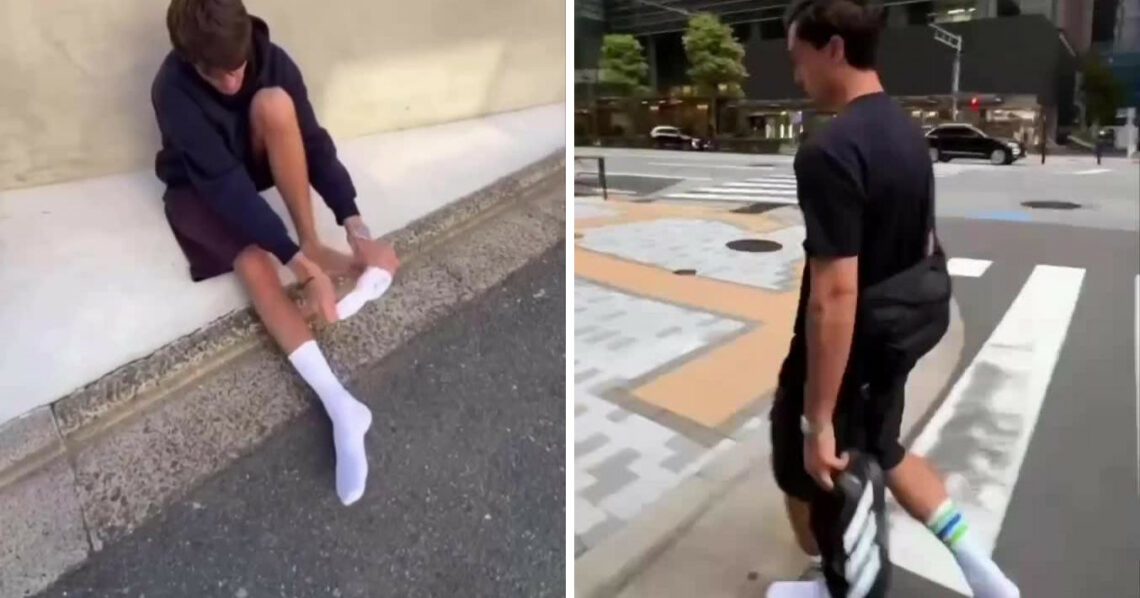 В Японии турист проверил чистоту улиц, пройдясь в одних носках