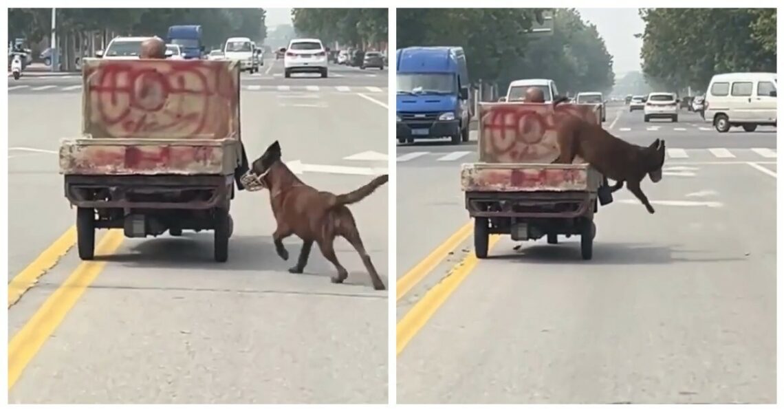 Пёс-акробат: постоянно прыгает из прицепа на дорогу и обратно