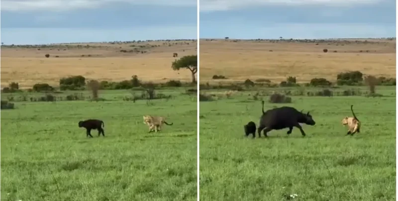 Ролик атаки буйвола против львов стал популярным — набрал более 30 тыс. реакций. На кадрах можно увидеть, как один из львов прайда набросился на детеныша буйвола, пытаясь его поймать.