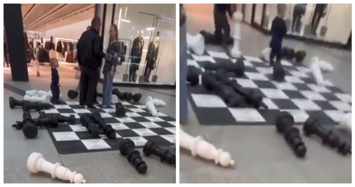 В Самаре мальчик разбросал гигантские фигуры шахматной доски в ТЦ «Космопорт». Они падали с изрядным шумом и мешали посетителям. Работник торгового центра попросила мальчика перестать хулиганить, но на выручку ребёнку пришёл его отец. Мужчина сразу «полез в бутылку», заявив, что если его ребёнок хочет играть, он будет играть. И да — он хочет именно швырять фигуры.