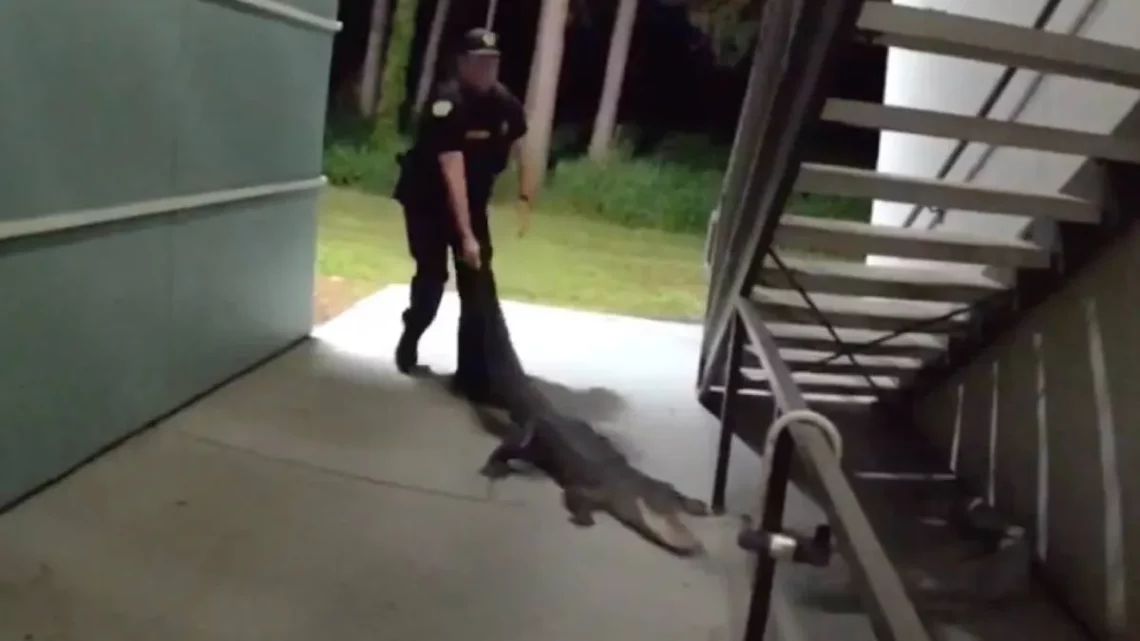 Рептилия сопротивлялась, хлопая хвостом, но офицерам удалось задержать её, не причинив вреда. Позже аллигатора отвезли к специалистам, а затем выпустили обратно в озеро Манн — в его естественную среду обитания.