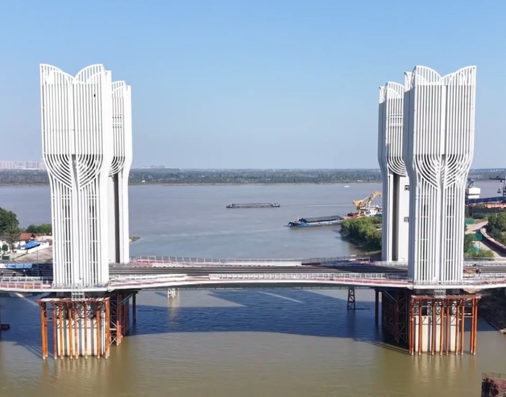 В Ухане завершились важные испытания первого разводного моста в Центральном Китае. Расположенный в районе Циншань, мост имеет длину 737 метров, подъемный пролет составляет 104 метра, а вес мостового полотна — 2650 тонн, что является рекордом среди разводных мостов в Азии.