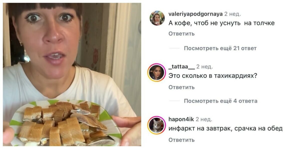 Утро среды — время, когда организм сам не знает, чего хочет. Одна девушка, видимо, решила не мучить себя сомнениями и собрала завтрак мечты: три кофе, два хлебца и тарелку селёдки. Интернет оценил — теперь это не просто еда, а философия жизни между “ещё пять минут сна” и “надо дожить до пятницы”.
