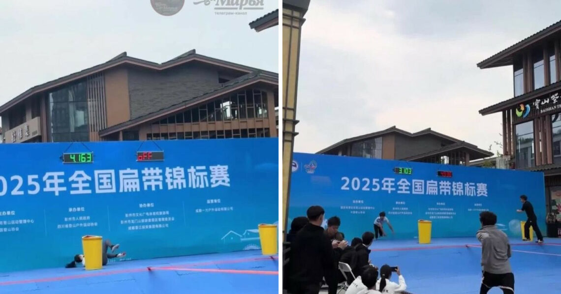В Сычуани прошли необычные соревнования по скоростному слэклайну