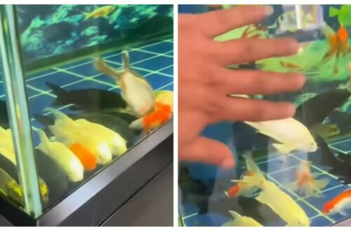 Теперь маленький поезд нарезает круги, останавливается на «станциях», а рыбки гоняются за ним, иногда забираясь прямо в вагончики и «тусят» внутри них.