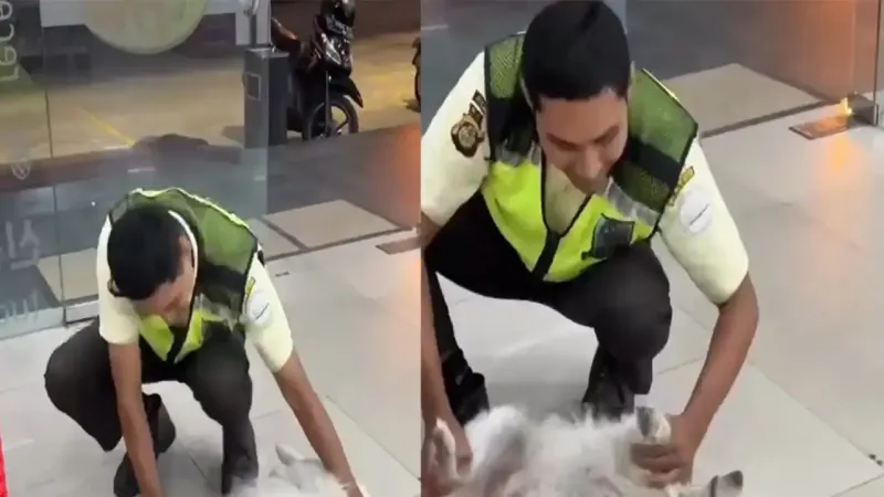 На Бали охранник магазина столкнулся с необычной задачей — вежливо выпроводить лохматого посетителя, нарушавшего правила. Пес удобно устроился на полу и категорически игнорировал все намеки.