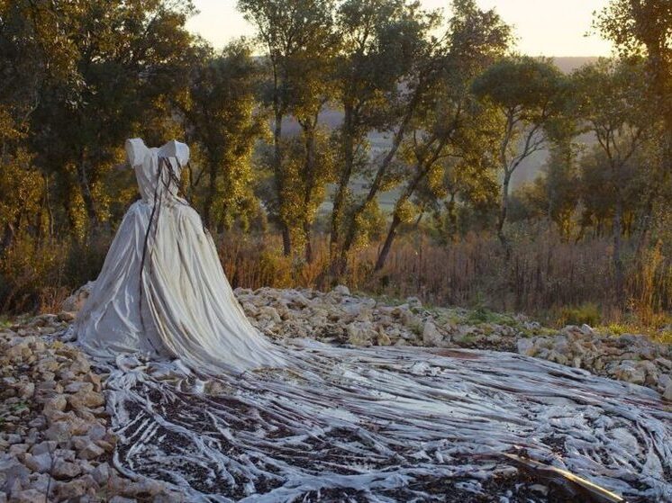 Начинается «Ансельм. Шум времени» с окаменевших платьев, сделанных то ли ткани, то ли из асбеста. Они стоят в лесу как исполины, под сводами стеклянной галереи и хороши для бала, если бы не следы времени. Вместо голов над ними возвышаются стопки книг с испепеленными страницами, кирпичи, колючая проволока. Кадры хроники, включая военную, сочетаются у Вендерса с игровыми сценами.