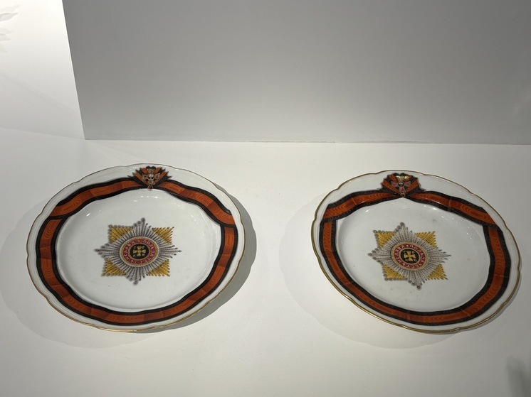 А ларчик, как говорится, просто открывался… Наличие стеклянной посуды (рецептурой стекла занимался сам Ломоносов, кстати), как и фарфоровой, — тоже результат труда ученых эпохи Просвещения. Но вот что еще интересно: для экспозиции выбрали не просто какой-нибудь фарфор, как символ знаменательного открытия, а так называемый орденский сервиз, а точнее предметы из сервиза ордена Святого равноапостольного князя Владимира — один из четырех наборов посуды, выполненных по заказу Екатерины Великой, другие три вдохновлены орденами Георгия Победоносца, Андрея Первозванного и Александра Невского. Раз в год императрица организовывала банкеты для кавалеров этих орденов, на которых эти сервизы и использовали. Так что это не просто эстетика и красота, но еще и утилитарная история.