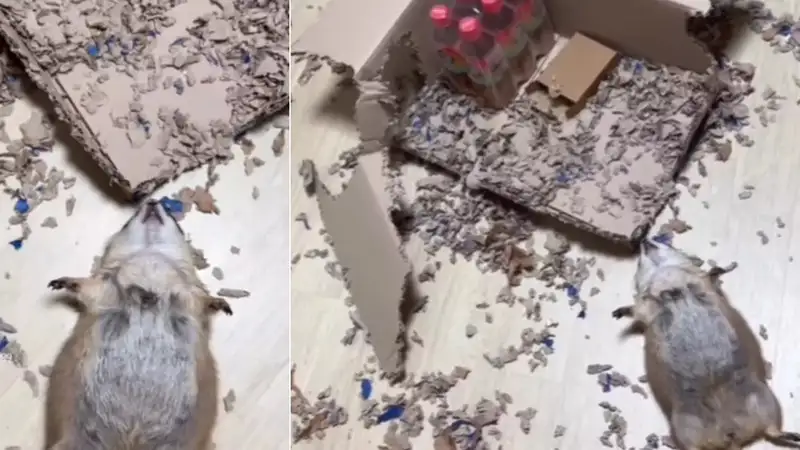 Хозяйка квартиры обнаружила настоящий беспорядок: пищуха (она же сеноставка) разгрызла коробку и разбрасывала её куски по всему дому. Увидев хозяйку, пушистый «нарушитель» мгновенно сменил амплуа — растянулся среди хаоса и сделал вид, будто сам оказался «пострадавшим».