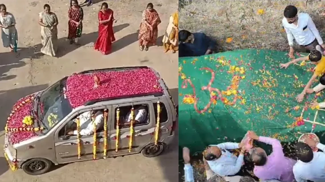 Автомобиль, украшенный цветами и гирляндами, был торжественно перевезен с фермы семьи, где для него подготовили специальную могилу глубиной 4,5 метра. После проведения индуистского ритуала самадхи с чтением мантр и подношением лепестков роз, машину, накрытую зеленой тканью, опустили в землю с помощью строительной техники.