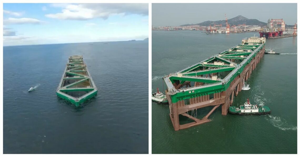 Если взглянуть на неё со стороны, сначала даже не поймёшь, что перед тобой — что-то вроде сельского хоздворика, только растянутого почти на четыре футбольных поля. 385 метров в длину. Почти 60 метров в ширину. Гигантская металлическая кишка, внутри которой живёт будущее лососевой индустрии. Говорят, этот исполин способен выкормить до десяти тысяч тонн рыбы за один цикл. Звучит непривычно — столько веса, столько живности, заключённой в конструкцию, которая ведёт себя как полу-судно, полу-ферма. Иногда даже кажется, что она сама дышит вместе с морем.