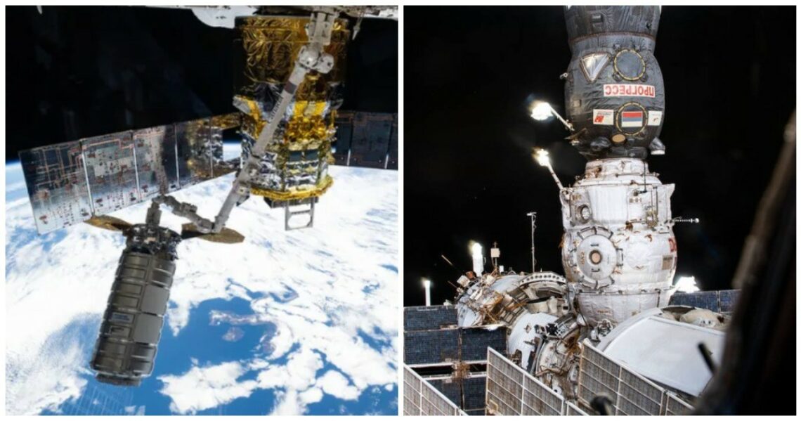 Примерно то же самое впервые за четверть века произошло на Международной космической станции. Все восемь стыковочных узлов, которые есть на орбитальной станции, одновременно заняты космическими кораблями.