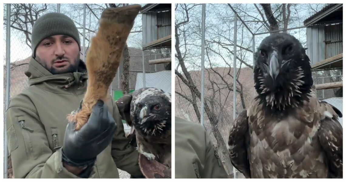 Животные Мужчина показал, как хищная птица проглатывает добычу 09.12.2025 - от markus Автор: 08 декабря 2025 11:10 Мужчина с птицей на руке продемонстрировал особенности кормления бородача — птица аккуратно проглотила баранью ножку, показывая свою природную силу и уникальные навыки. Источник: Ссылки по теме: