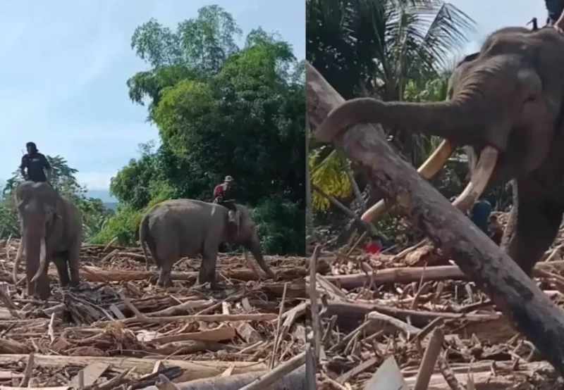 В одном из пострадавших от наводнения регионов Индонезии власти задействовали четырёх приручённых слонов, чтобы ускорить расчистку территории. Из-за затопленных участков и узких проходов тяжёлая техника не может подойти к завалам, поэтому животных используют для переноса брёвен, вытаскивания упавших деревьев и разбора крупных завалов.