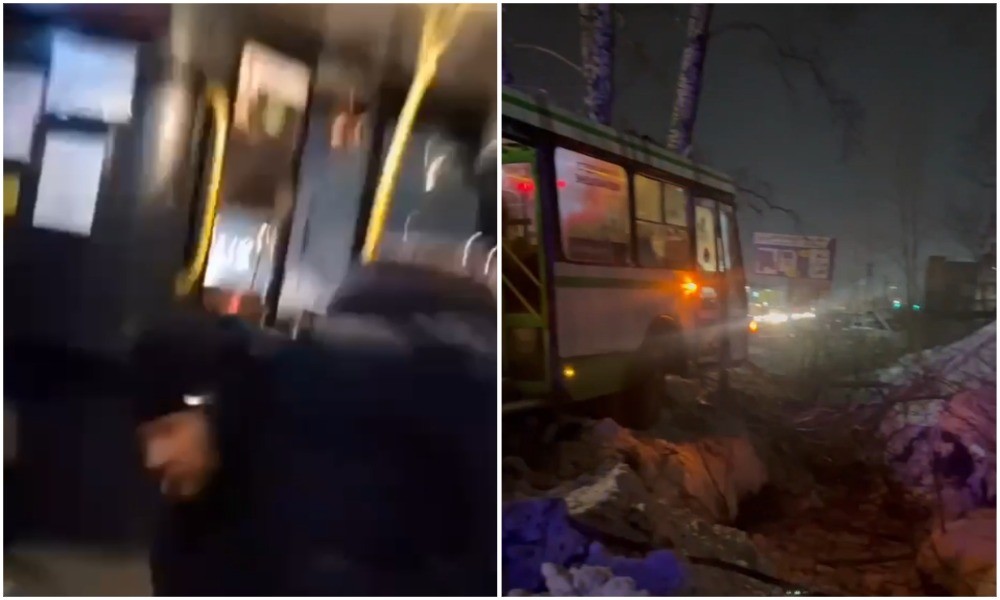 Видео из салона автобуса, у которого отказали тормоза