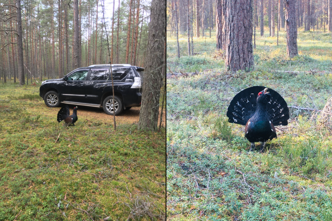 Поэтому птиц измывается над нами, как хочет. Как же, посягнули на его территорию. Полный отморозок. Совершенно не соизмеряет силы свои и наши. Наверное, слышал, как я говорила мужу, что если он хоть раз пнет глухаря, когда тот нападает, то я с ним (то бишь с мужем) разведусь. Поэтому птица ходит за нами по лесу по пятам. Идем процессией: я, муж, доча и сзади глухарь…