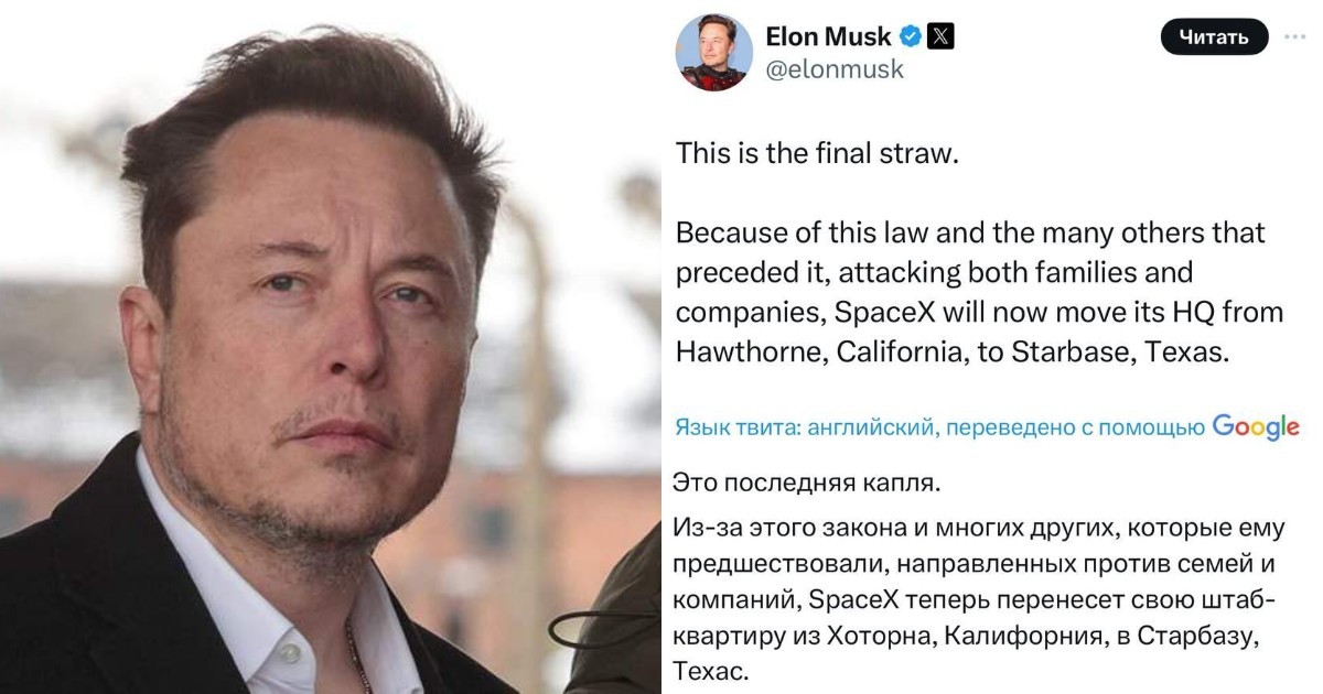 «Это была последняя капля»: Илон Маск объявил о переносе своих компаний из штата Калифорния в штат Техас из-за нового закона о детской трансгендерности