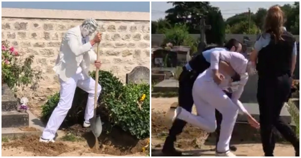 Очевидцы в итоге вызвали охраны и нерадивого акциониста задержали. По данным местных СМИ, инцидент произошёл в понедельник, 29 июля. Отмечается, что Кузьмич не трогал саму могилу и надгробие, а копал яму поблизости, чтобы не залететь на уголовное дело или крупную сумму штрафа. Сейчас в отношении задержанного проводится расследование, однако местные…