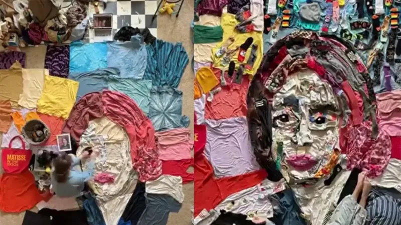 Девушка создала потрясающую копию импрессионистского портрета женщины из самых разных предметов гардероба и постельного белья. Футболки, сумки и даже носки стали материалом для этого креативного полотна. Такой шедевр не только радует глаз, но и бросает вызов всем, кто не любит выходить за рамки и считает, что невозможно создать произведение искусства…