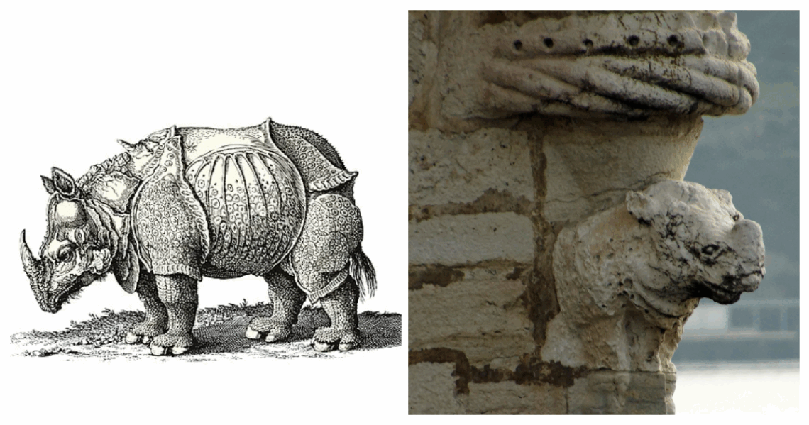 В результате получился фантастический зверь, покрытый бронёй из металлических пластин. Этот образ стал настолько популярным, что веками тиражировался в европейском искусстве, хотя настоящие носороги выглядели, мягко говоря, несколько иначе.