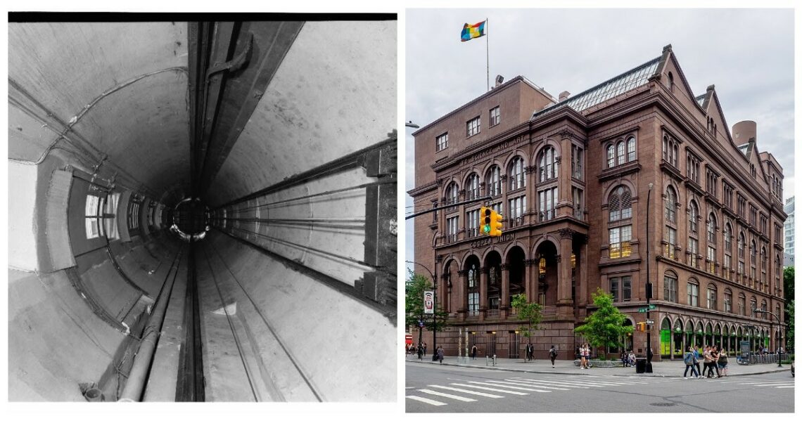 И в 1854 году (через год после закладки Foundation Building) Элиша Отис провёл эффектную демонстрацию на Выставке промышленных достижений в Нью-Йорке. Отис поднялся на платформе по направляющим рельсам на глазах у зрителей. Когда она достигла максимальной высоты, он перерубил трос топором. Толпа ахнула, но платформа рухнула лишь на несколько сантиметров, а затем замерла.