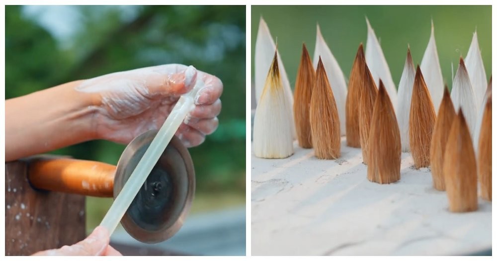 Самые древние экземпляры изготовлены из бамбука и ворса животных, чаще всего козы, волка или кролика. Ручку традиционно делали из бамбука, но для подарочных кистей использовали сандаловое дерево, нефрит, кость, рог буйвола, фарфор или даже черепаховый панцирь. Также ее нередко украшали резьбой или лаком. Сегодня кисти по-прежнему используются в каллиграфии, живописи…