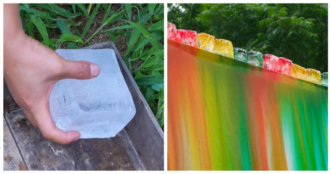 Автор: 10 октября 2025 08:09 Мужчина сначала изготовил порошковые красители из арбуза и полыни, а затем, наколов льда, разложил его над тканью и посыпал красители сверху. Тая, вода со льда равномерно распределила краситель по ткани и создала плавные переходы цвета. Источник: Ссылки по теме: