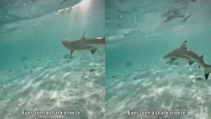 Акулы вынуждены постоянно двигаться, чтобы вода проходила через жабры и обеспечивала дыхание, так как у них нет плавательного пузыря. Иногда, при резком движении или изменении направления, вода может выплескиваться из жаберных щелей, что может выглядеть как «чихание».