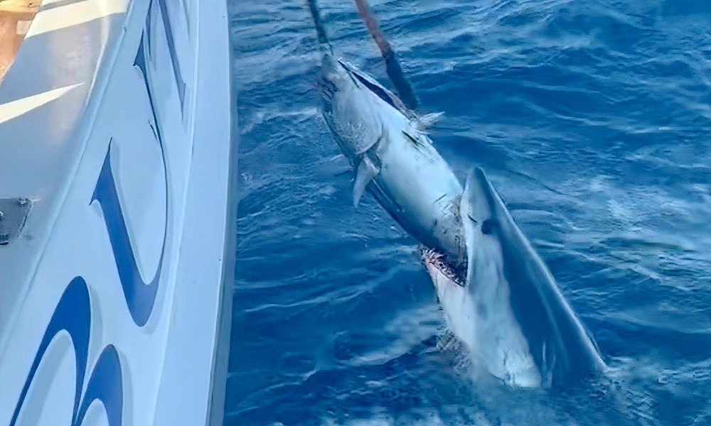 Поединок закончился победой людей, и хищнице пришлось уплыть без добычи. Произошедшее попало на видео, снятое одним из очевидцев, который был на борту судна. Длина акул-мако может достигать четырех с половиной метров. Они обитают в водах умеренных и тропических морей и считаются одним из самых агрессивных представителей своего вида.