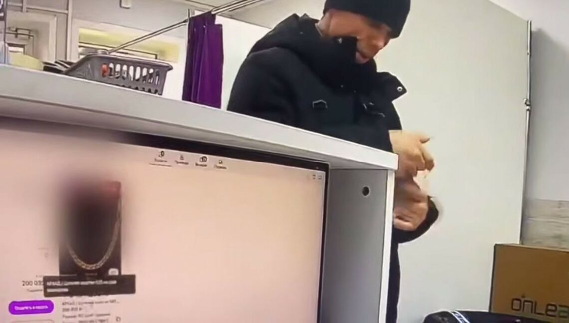 Преступник осмотрел товар и сбежал с ним из пункта выдачи. Затем злоумышленник продал цепочку за 80 тысяч рублей. Благодаря активному содействию граждан полицейские смогли быстро установить личность похитителя. Кадры похищения цепочки во второй половине ролика.