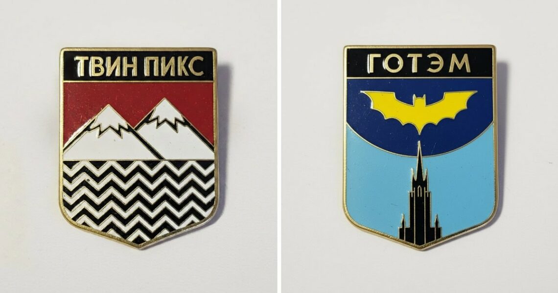 Как бы выглядели гербы городов из кино и сериалов, будь они советскими значками