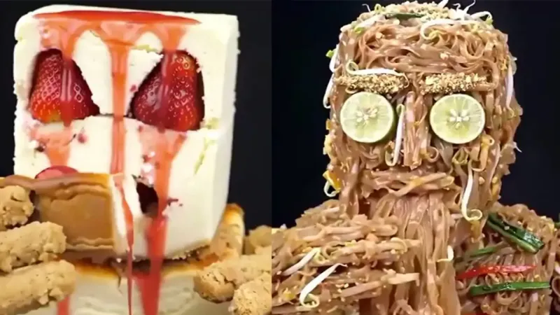Порой, когда нейросети дают волю фантазии, люди получают еще один повод пожалеть о собственных идеях. Например, этот ролик — результат того, что искусственный интеллект всерьез воспринял фразу «Ты то, что ты ешь» и сотворил жутковатую галерею живых десертов и закусок. Чизкейковый человек с аппетитом уничтожает своих сородичей, лососевый гурман набрасывается…