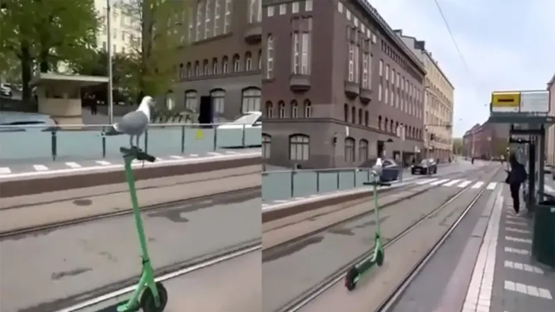 В городской среде появился новый участник движения — чайка, продемонстрировавшая недюжинные способности к управлению электросамокатом. Устроившись на руле, птица с невозмутимым видом прокатилась по трамвайным путям, будто ежедневно совершает такие прогулки. Ее уверенность в этом видео транспорта была настолько органична, что казалось, будто пернатые давно начали тайно осваивать человеческие технологии…
