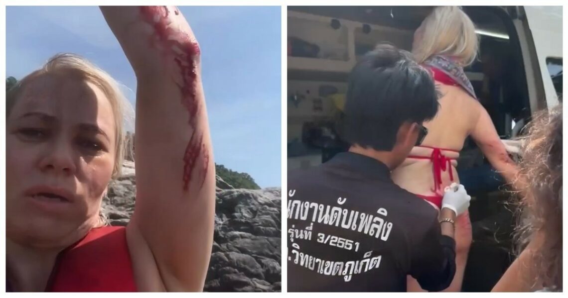 Девушка чудом выжила после удара о скалы во время шторма в Таиланде