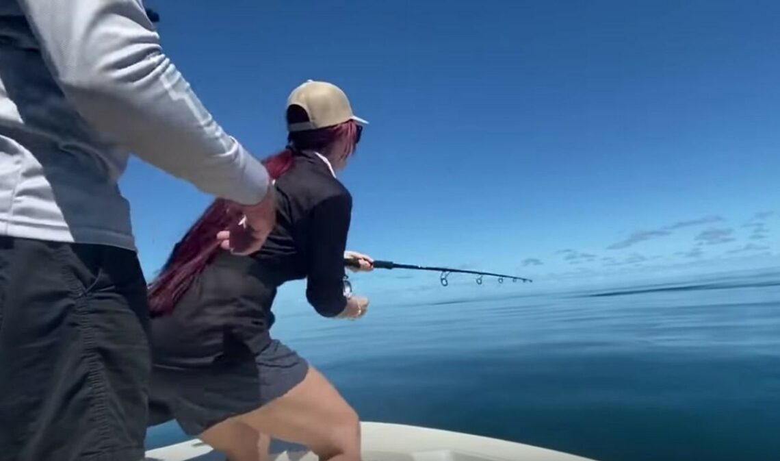 Рыба, попавшая на крючок, оказалась сильнее девушки и изо всех сил выдернула удочку у нее из рук. Поняв, что ее уже никто не держит, рыба начала удаляться от лодки вместе с удочкой. Но, к счастью, девушки, ей на помощь пришел ее друг. Он не раздумывая бросился в воду и успел…