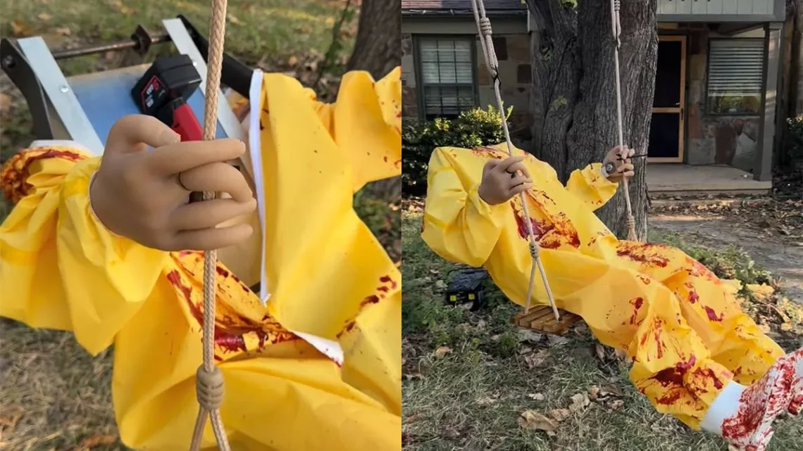 Чтобы придать роботу устрашающий вид, Стивен спрятал голову в капюшоне, что создало проблему с балансом, и пришлось утяжелить ботинки, чтобы зомби-робот не падал назад. Вся конструкция выполнена на алюминиевой раме и работает от двигателя беспроводной дрели, питающегося от аккумулятора, благодаря чему устройство полностью автономно и способно самостоятельно поддерживать движение. Эффект…
