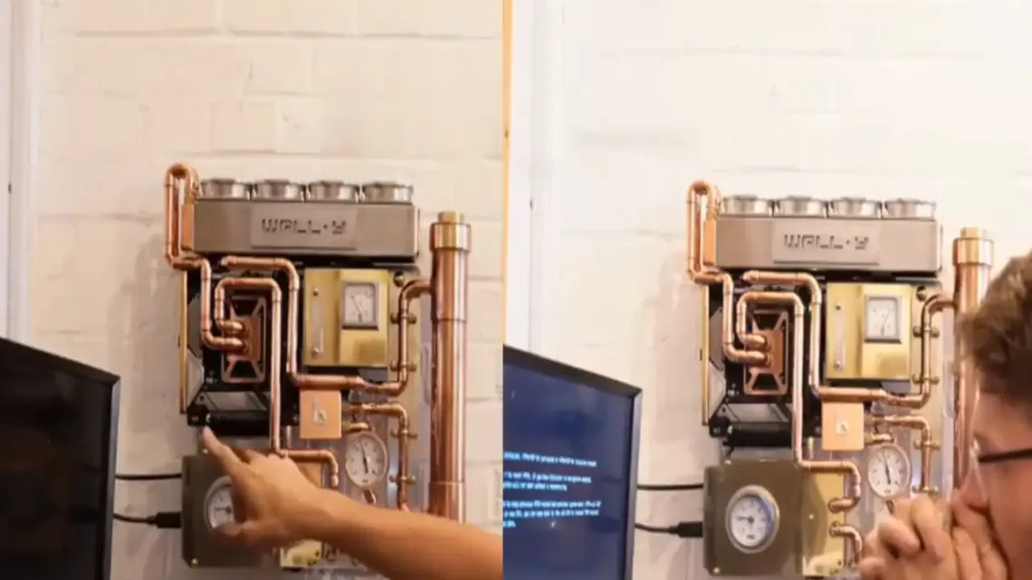 Кроме того, на этом «трубном» ПК красуются аналоговые датчики, как из старого паровоза. Термометр следит за температурой видеокарты, манометр проверяет давление в системе — все в латунных корпусах, с дрожащими стрелками, будто машина сейчас зашипит и поедет. Ну и ко всему прочему, необычный ПК можно прикрепить на стену, что прибалвяет…