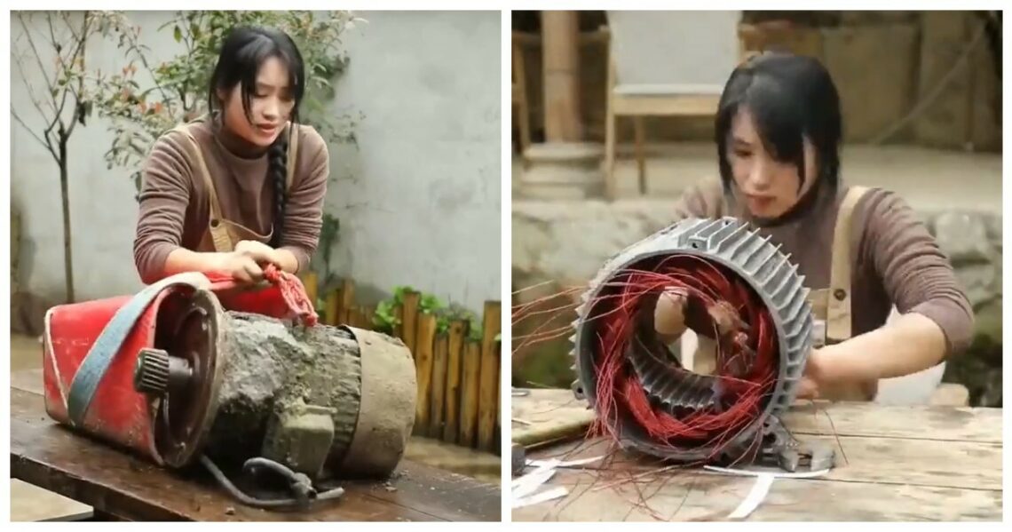 В Китае девушка самостоятельно починила двигатель бетономешалки