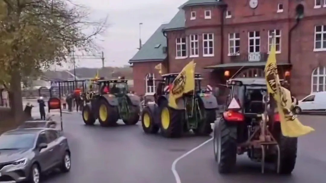 Новоиспеченные чемпионы Швеции по футболу проехались по родной деревне на автобусе. Рядом ехали болельщики на тракторах