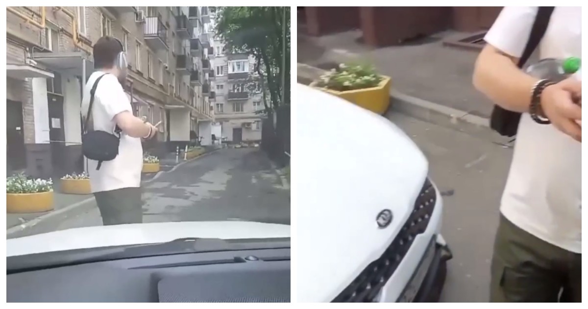 Мужчина не даёт таксисту проехать